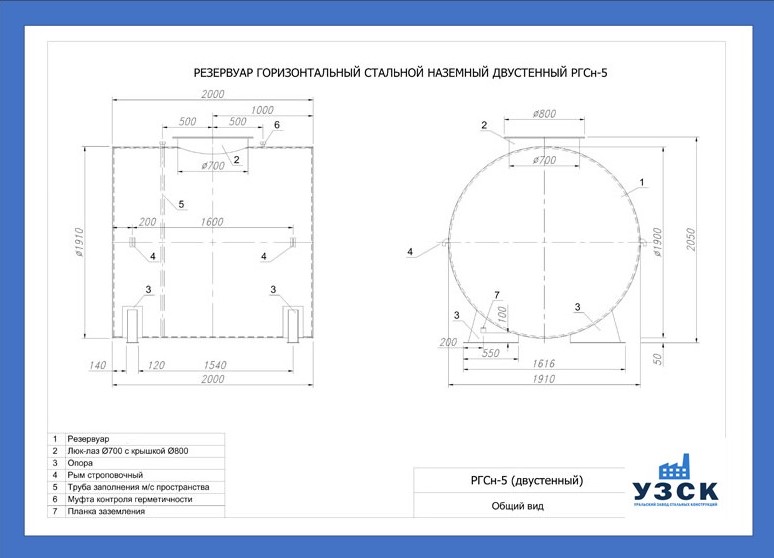 РГСДн-5: горизонтальный резервуар двустенный наземного расположения;
